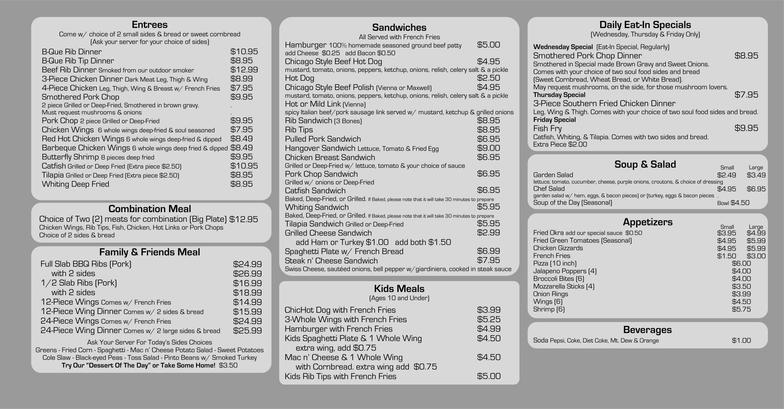 Chef prepares every dish with care to ensure her customers enjoy the best dining experience possible. Fresh, homemade southern style food made from scratch with natural ingredients and seasonings reminiscent of your Mom's home cooking.